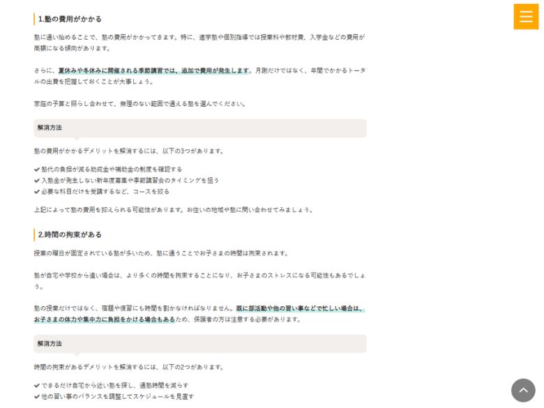 SEOはもちろん、文章の読みやすさも徹底し、テンポよく読み進められるように工夫いたしました。
